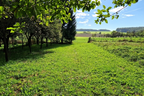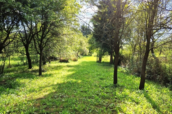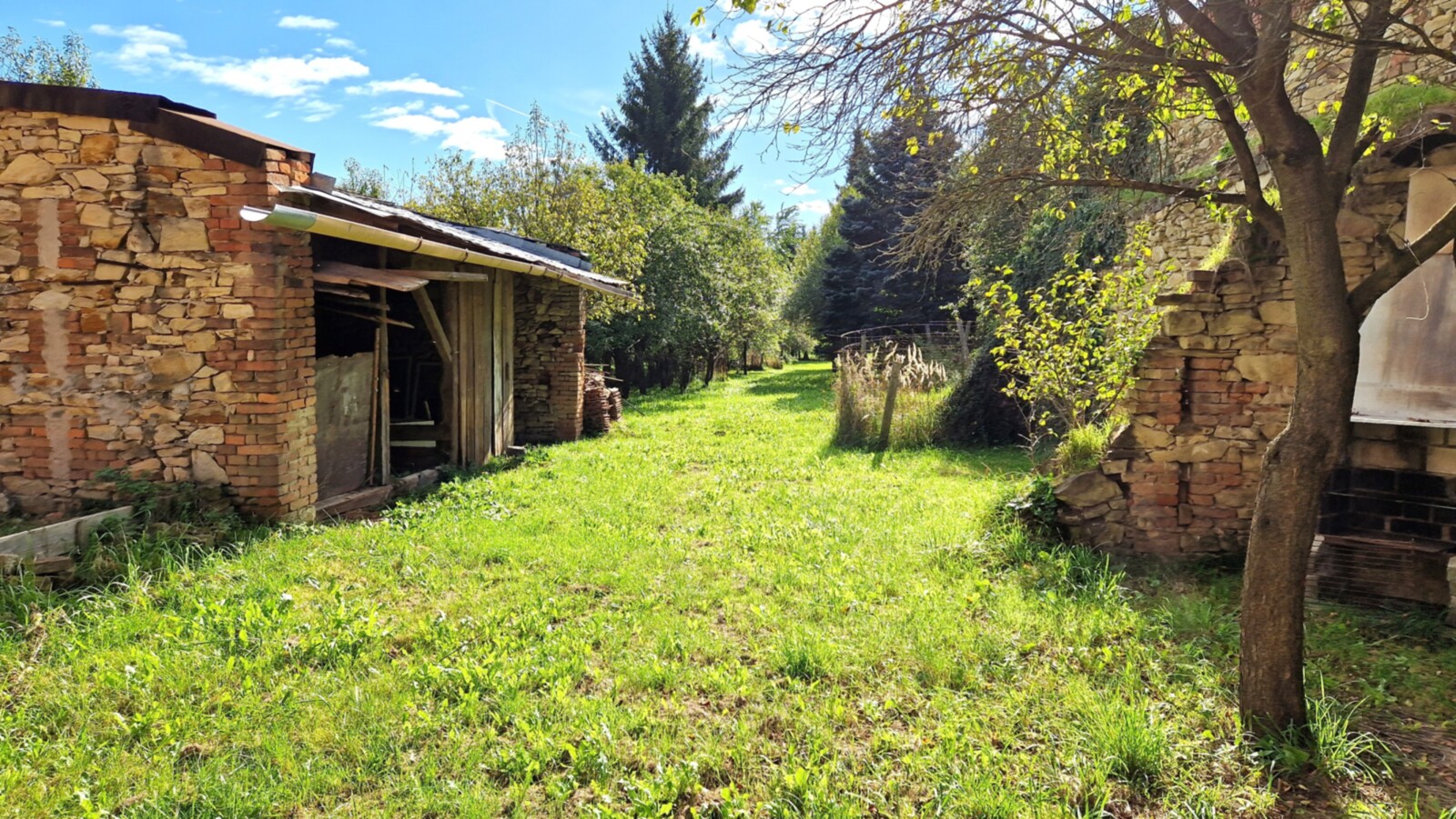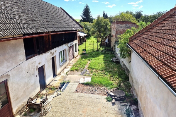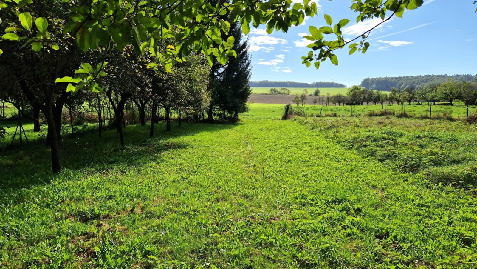 Za dvorem pokračuje krásná velká zahrada se vzrostlými ovocnými stromy. Je tudy možný další příjezd k zadní části domu a také možné budoucí další stavební místo.