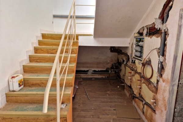 Na domě již byla zahájena rekonstrukce rozvodů elektřiny, vody, odpadů a topení.