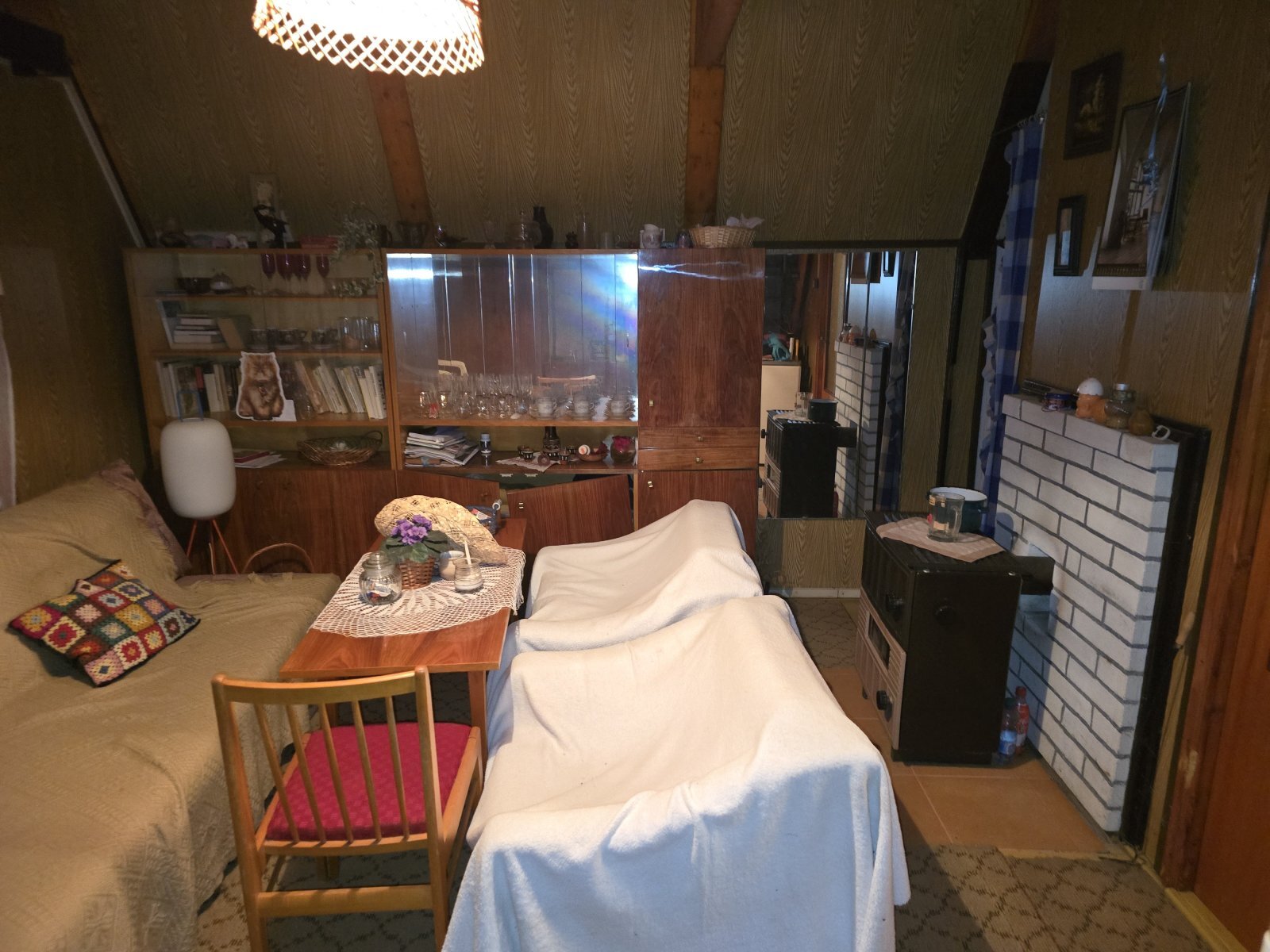 Prodej rekreační nemovitosti v Penčicích. Dřevěná chata se zděnou podezdívkou o podlahové ploše 45 m2 se nachází v chatové oblasti Penčice, místní části Penčičky. Jde o stavbu jejíž celková plocha 60 m2 je rozložena do 2 nadzemních podlaží a jednoho podzemního. Do chaty je zavedena elektřina a voda, odvod splaškové kanalizace do septiku. Chata má v přízemí obytnou místnost s terasou (lodžií), splachovací WC s koupelnou a kuchyňku, v patře dvě ložničky. Sedlová střecha je řešena krytinou z plechových plátů, okna a dveře dřevěné. V rámci podzemního podlaží (zděné podezívky) je sklep. Zahrada, která tvoří s chatou jeden funkční celek je svažitá, výměra 492 m2. K pozemku vede obslužná komunikace.