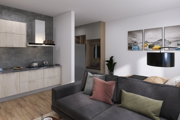 Prodej garsoniéry ve 2.N.P. bytového domu na ulici Komenského. Byt o podlahové ploše 31 m2, který je možno klasifikovat jako novostavba, se nachází ve 2.N.P. K 25.9.2025 byt ve fázi 70% prostavěnosti. Předpokládaný termín dokončení 31.12.2025 včetně fasády domu. Příslušenstvím bytu je komora, která se nachází v mezipatře. Podlahová krytina vinyl v kombinaci s dlažbou, moderní zařizovací předměty, vestavěná skříň, moderní kuchyňská linka. Vytápění je řešeno ústředním rozvodem napojeným na domovní plynovou kotelnu, která zajišťuje zároveň TUV. Bez poplatku zajistíme profesionální návrh financování včetně jeho expresní realizace.