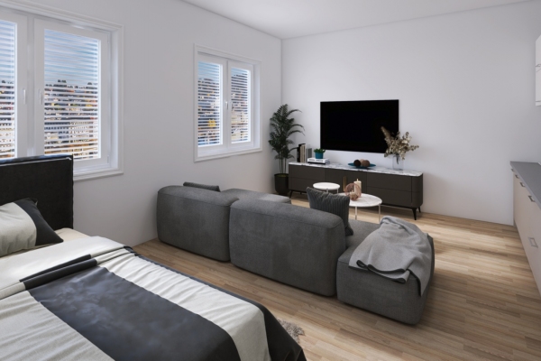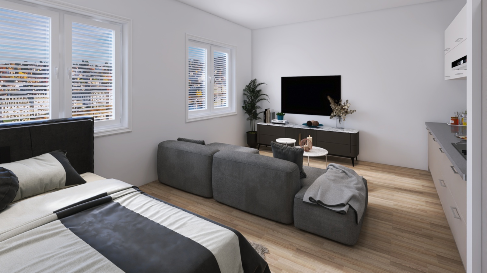 Prodej garsoniéry ve 3.N.P. bytového domu na ulici Komenského. Byt o podlahové ploše 30 m2, který je možno klasifikovat jako novostavba, se nachází ve 3.N.P. K 25.9.2025 byt ve fázi 70% prostavěnosti. Předpokládaný termín dokončení 31.12.2025 včetně fasády domu. Příslušenstvím bytu je komora, která se nachází v mezipatře. Podlahová krytina vinyl v kombinaci s dlažbou, moderní zařizovací předměty, vestavěná skříň, moderní kuchyňská linka. Vytápění je řešeno ústředním rozvodem napojeným na domovní plynovou kotelnu, která zajišťuje zároveň TUV. Bez poplatku zajistíme profesionální návrh financování včetně jeho expresní realizace.