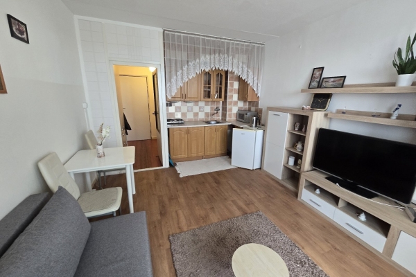 Pronájem garsoniéry (1+kk) v 11. patře panelového domu se dvěma výtahy na ulici Velká Dlážka. Byt je v původním, ale dobře udržovaném stavu. Bytové jádro je obložené. V bytě se v současnosti realizuje výměna nové kuchyňské linky a výměna podlahy v předsíni.Příslušenstvím bytu je lodžie (4 m2) a sklepní kóje (2 m2). Dům, ve kterém se jednotka nachází, je po revitalizaci obvodového pláště, střechy, po výměně oken, výtahů a stupaček. Bydlení se nachází v lokalitě města s plnou občanskou vybaveností a velmi dobrou dopravní dostupností. Nájem včetně služeb (voda, TUV, teplo, výtahy, atd.) cca 9.500 Kč, vratná kauce 20.000 Kč, provize 10.000 Kč, nájemce si na sebe uzavírá smlouvu na dodávku energie.