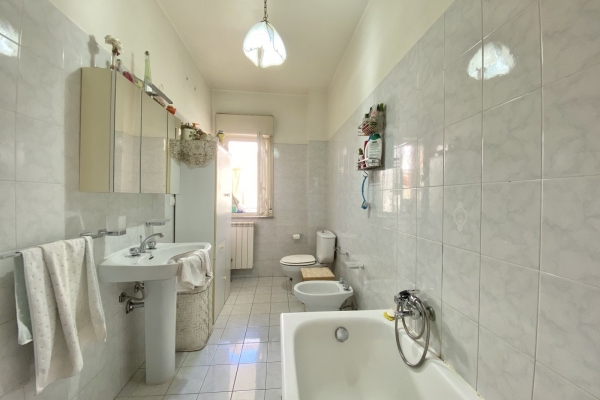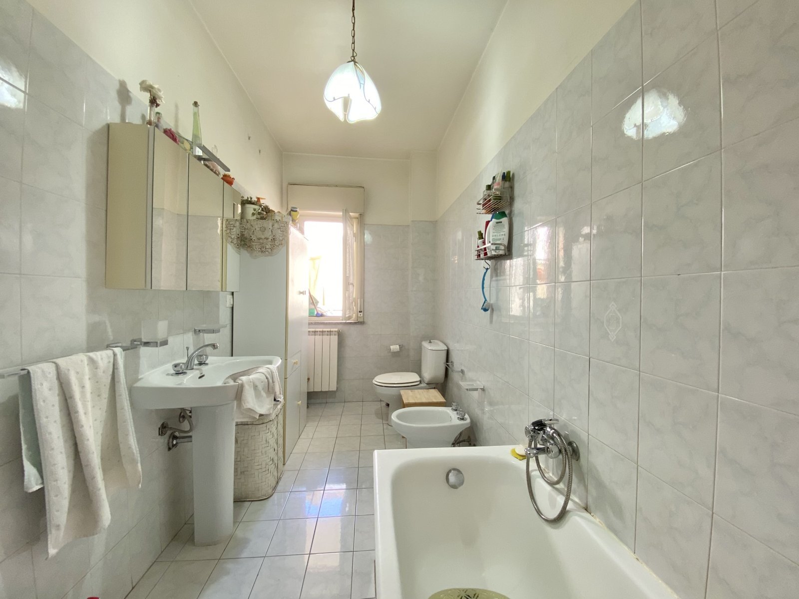 Na ulici Via Lungomare Cristoforo Colombo, přímo na pobřežní promenádě a v těsné blízkosti plážového klubu Lido Plays, se nachází prostorný a slunný apartmán s výhledem na moře. Byt se skládá ze vstupní haly, prostorného obývacího pokoje, jedné hlavní ložnice, menšího pokoje, pohodlné kuchyně, dvou koupelen a dvou velkých balkónů ideálních pro relaxaci na čerstvém mořském vzduchu. Součástí nemovitosti je také garáž (box) – skvělý doplněk v této vyhledávané přímořské oblasti.