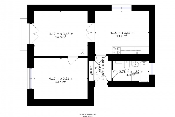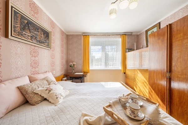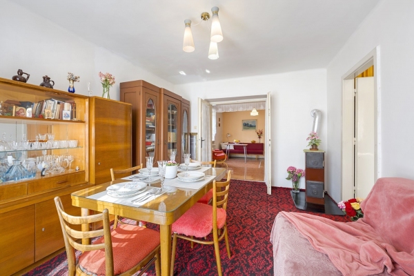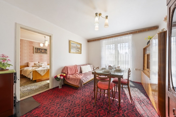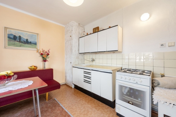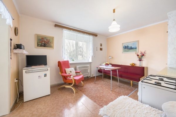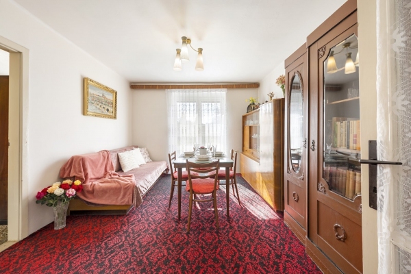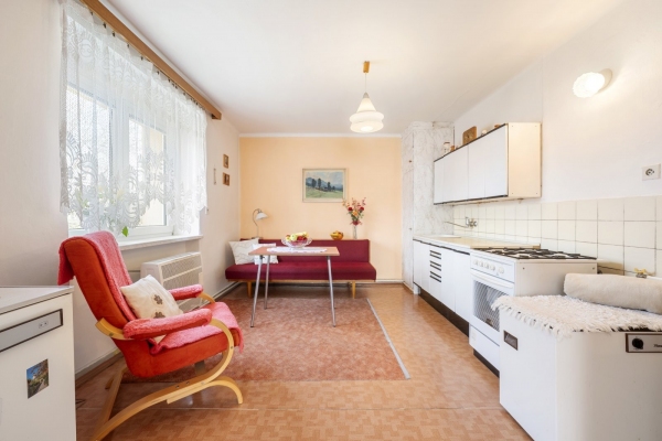 Nemovitost byla až doposud celoročně a plnohodnotně využívána, udržována v čistotě a pořádku. Dispozice bytu 2+1 o velikosti cca 49,35m2 disponuje vstupní chodbou, kuchyní s jídelnou, ložnicí a obývacím pokojem s francouzským oknem, které umožňuje větší prostor pro světlo z jihozápadní strany. Na chodbě je pak vestavěná skříň a koupelna s WC. Dva sklepy mají celkem 3,80m2. Pro svou dispozici je byt vhodný i jako investiční příležitost k pronájmu. V domě jsou veškeré IS a vytápění je řešeno plynovými tělesy Mora a v koupelně je bojler napojen na plynovou karmu.