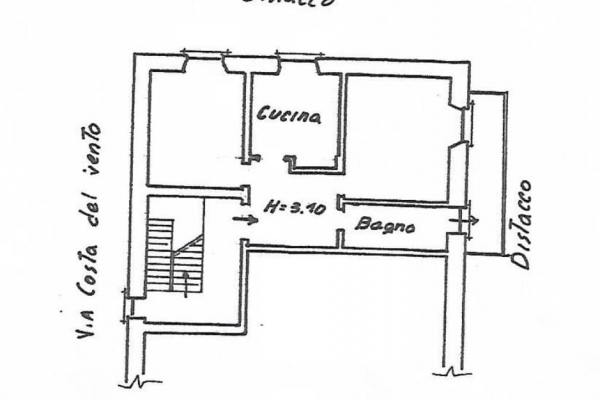 Nabízíme k prodeji byt o dispozici 2+1 a přibližné užitné ploše 60 m2, nacházející se ve druhém patře (3. nadzemní podlaží) bytového domu na ulici Via Costa del Vento, Janov – Municipio VII Ponente. Byt sestává z jedné ložnice, obývacího pokoje se vstupem na balkón, kuchyně s plynovým sporákem, chodby a koupelny s vanou. Velký balkón disponuje uklidňujícím výhledem do zeleně. Technický stav bytu je původní a je tedy vhodný k rekonstrukci. Měsíční poplatky SVJ činí € 35.