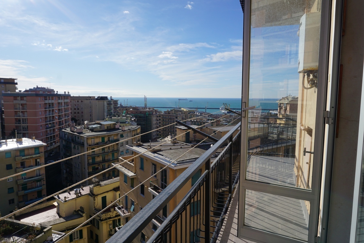 Nabízíme k prodeji byt se dvěma ložnicemi, kuchyní, koupelnou s vanou a dvěma velkými balkóny v zóně Sampierdarena na ulici Via Bartolomeo Carrea v Janově. Byt se nachází v osmém patře devítipodlažního domu s výtahem. Byt je velmi slunný, ze všech místností je východ na balkón a z jednoho je překrásný výhled na moře. Okna jsou plastová s dvojskly, podlahy jsou z janovského teraca (pavimenti in graniglia alla genovese). Vodovod je obecní, topení ústřední. Měsíční poplatky SVJ činí včetně záloh na vodu a topení € 150.