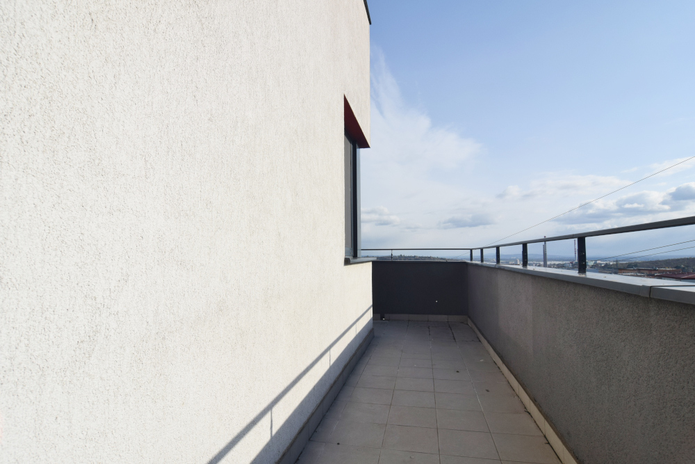 - Ložnice (12 m2) a hlavní obytná místnost mají vstup na terasu (12 m2) s výjimečným výhledem.