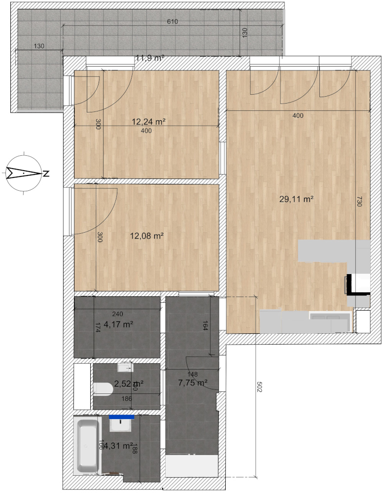Nabízíme k pronájmu moderní, slunný a prostorný byt 3+kk o přibližné podlahové ploše 72 m2, který se nachází v Brně – Líšni na ulici Houbalova.