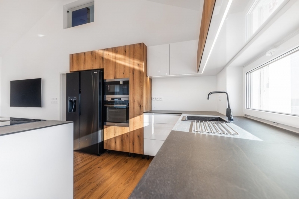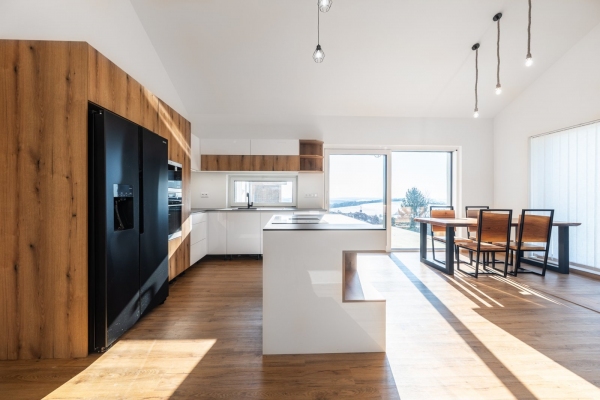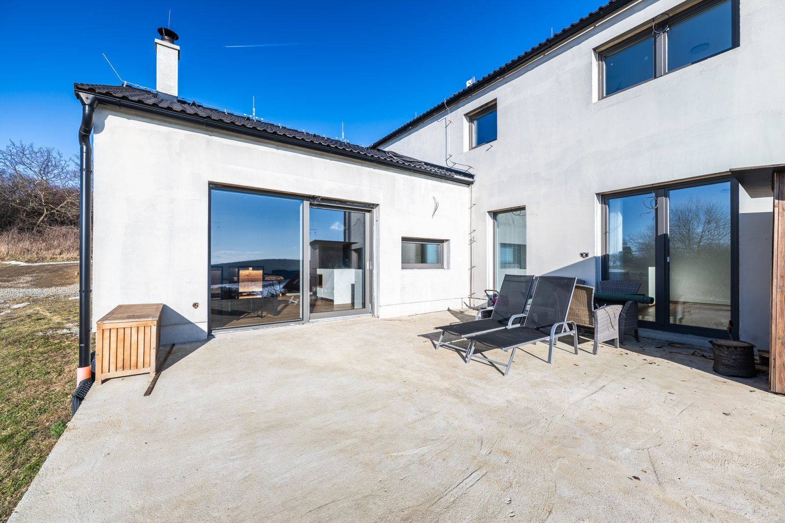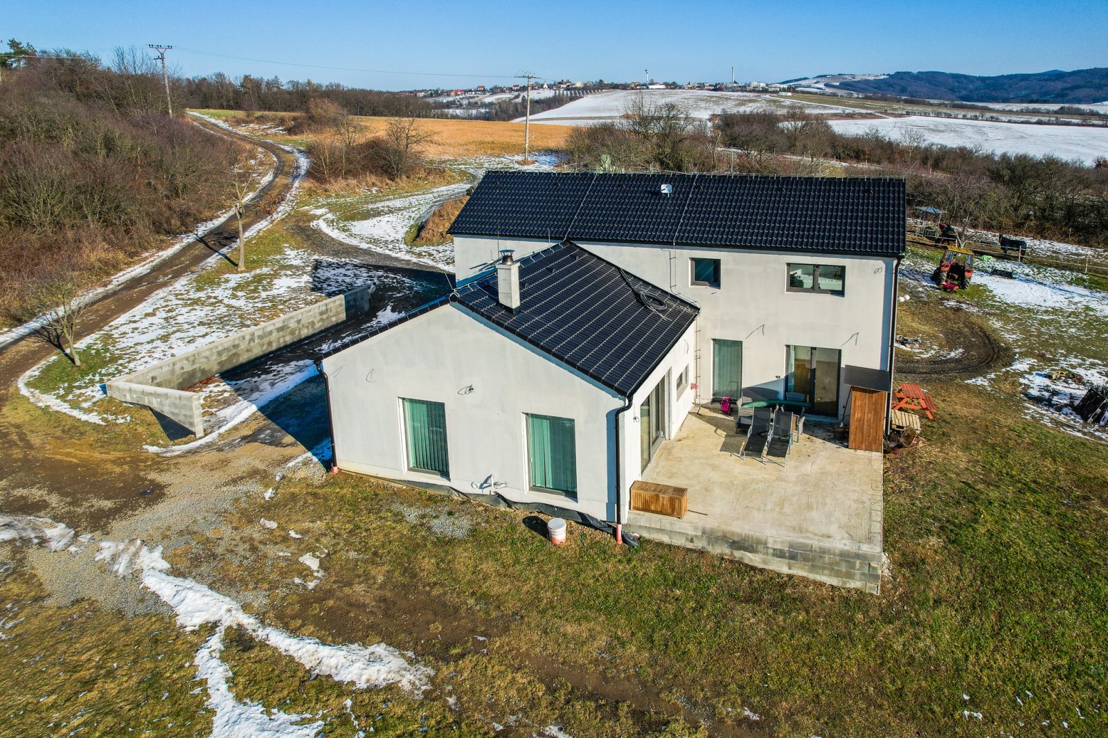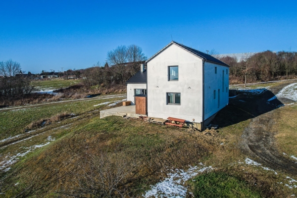 Dům o velikosti 207 m2 nabízí velmi zdařilou dispozici 5+kk, ve které je samozřejmostí velká šatna a technická místnost. Maximální komfort zajišťují dvě koupelny a dvě toalety. Dominantou obývacího pokoje je krb, který je napojen na podlahové topení a vytápí celý dům. Záložní zdroj vytápění je elektrokotel. Dům je připraven na instalaci solárních panelů. Moderní kuchyň je vybavená kvalitními elektrospotřebiči značky AEG. Součástí domu je rozlehlá terasa, která je jako dělaná pro letní grilovačky a instalaci vířivky. Dům je těsně před dokončením, proto některé detaily jako je barva fasády, žaluzií atd., můžete přizpůsobit svému vkusu. Parkovaní u domu pojme až 4 auta. Pozemek o výměře 770 m2 zajišťuje dostatečné soukromí.