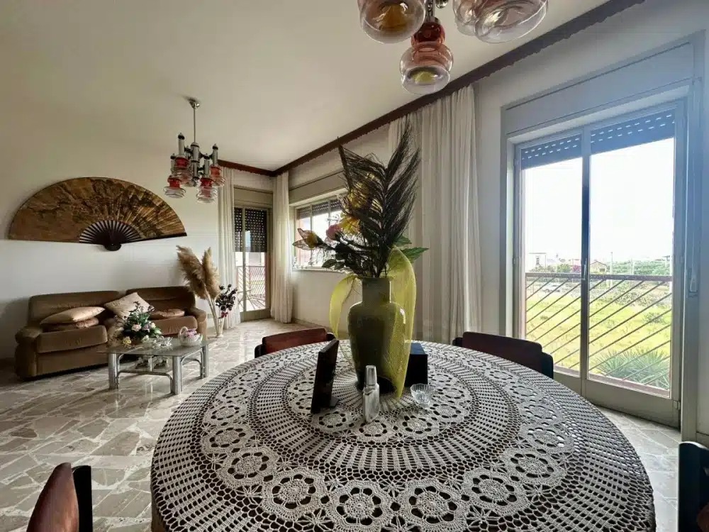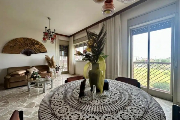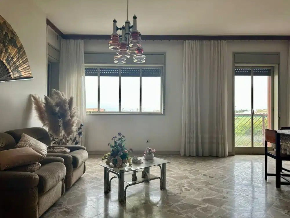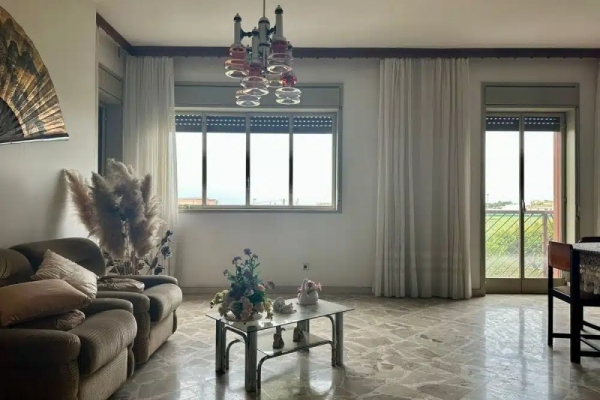 V Milazzu, v ulici Via Palmiro Togliatti (oblast Fiumarella), nabízíme k prodeji světlý a prostorný byt situovaný ve zvýšeném přízemí budovy bez výtahu. Nemovitost o rozloze přibližně 106 m² se pyšní panoramatickým výhledem na město, a to díky své výsadní poloze, kde ve výhledu nebrání žádné okolní budovy. Interiér je prakticky rozvržen a zahrnuje velký obývací pokoj, obytnou kuchyni s přilehlou útulnou verandou, dvě ložnice a dvě koupelny (jedna s vanou, druhá se sprchovým koutem a prádelnou). K bytu náleží také dva sklepy, které jsou již zahrnuty v prodejní ceně a poskytují dostatek úložného prostoru.